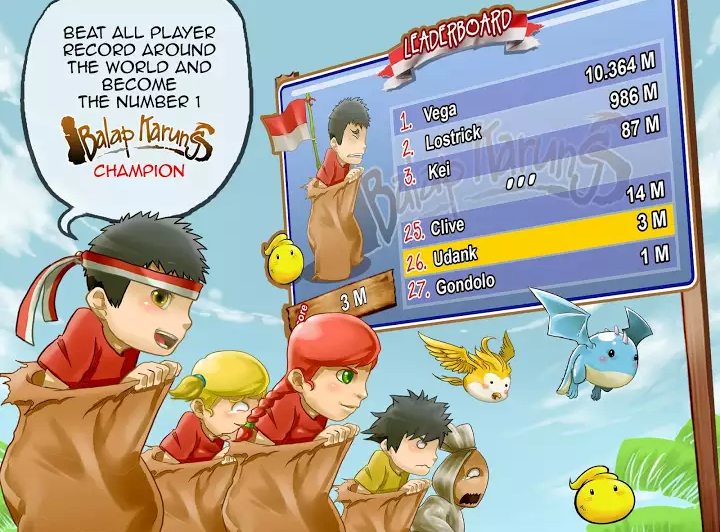 Balap Karungs adalah permainan tradisional Indonesia yang dimainkan ketika merayakan hari kemerdekaan yang dilakukan oleh semua kalangan masyarakat. Balap Karungs merupakan game offline yang tidak memerlukan koneksi internet untuk dimainkan.