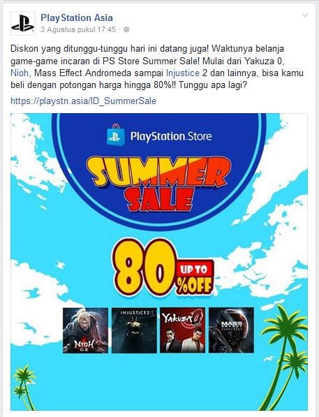 Akhirnya, event Summer Sale datang kembali di PlayStation Store. Nah, bagi kamu pengguna konsol PlayStation 4 bisa menikmati diskon dari game populer saat ini, seperti Injustice 2, Yakuza 0, NioH, Mass Effect: Andromeda, dan lainnya.