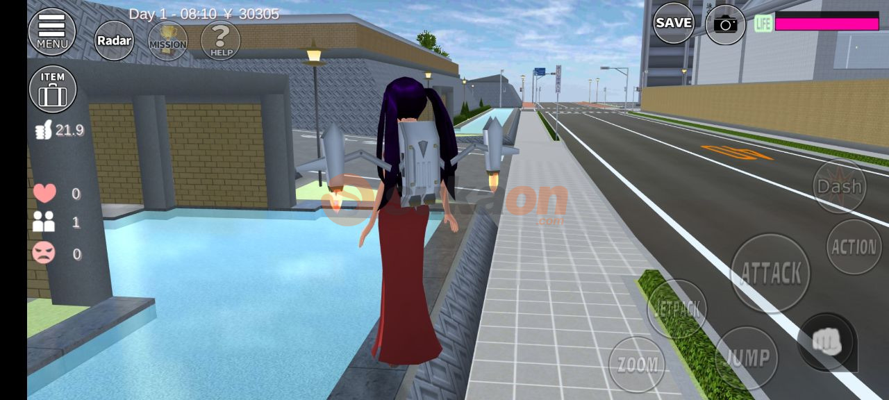 - Di Yakuza Momo-gumi, kamu harus menggunakan jetpack untuk naik ke atap bangunan Yakuza Momo-gumi dan kamu akan menemukan uang di atas bangunan tersebut.