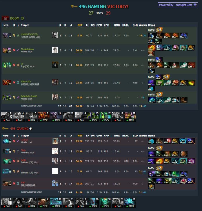 BOOM ID harus kalah ketika melawan 496 Gaming dan Team Adroit, mereka harus rela menempati posisi ke-6 dengan mengumpulkan total 3 kemenangan dan 4 kekalahan.