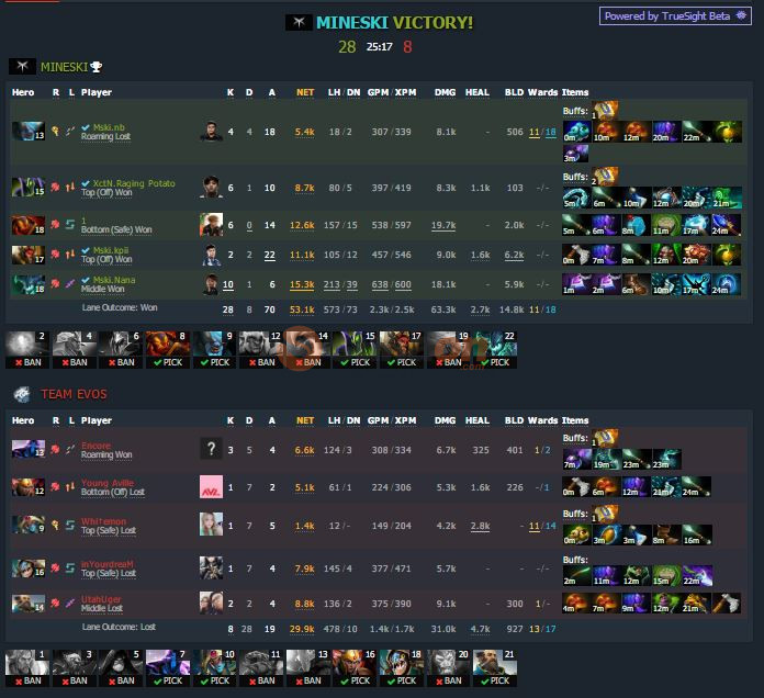 Berhasil melawan Resurgence, EVOS Esports harus takluk ketika melawan Mineski dan Team Jinesbrus, membuat tim yang dikenal dengan slogan EVOS Roar ini harus puas berada di peringkat 7 klasemen akhir.