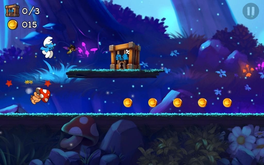 Di sini pemain akan berlari, melompat, memanjat dan meluncur seperti halnya dalam game Super Mario Run. Pemain bisa memainkan beberapa karakter seperti Smurfette, Papa Smurf, Handy Smurf, Brainy Smurf.