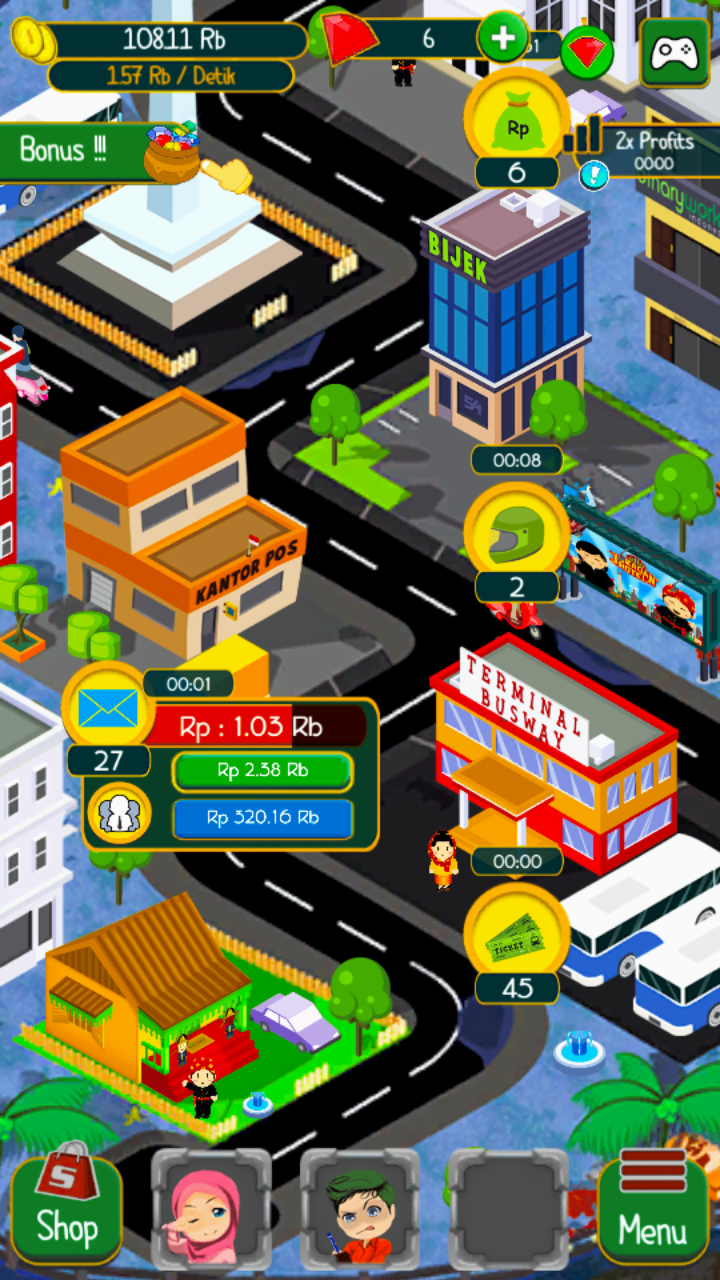Tidak hanya kota-kota di Indonesia (Bali, Bandung, Jakarta, Jogja dan Padang) namun, pemain juga dapat membangun kota di luar negeri. Pemain akan mendapatkan penghasilan dari setiap bangunan yang dibeli di kota-kota tersebut tanpa harus mengklik dan bila pemain tidak sedang memainkan game ini, pemain tetap mendapatkan penghasilan.
