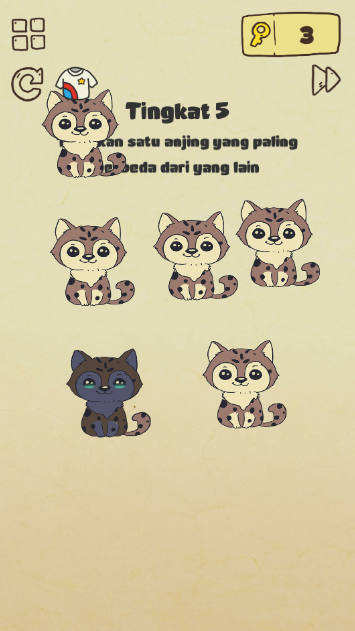 J: Geser semua anjing untuk menemukan anjing yang berbeda dibaliknya. Kemudian ketuk anjing yang berbeda itu.