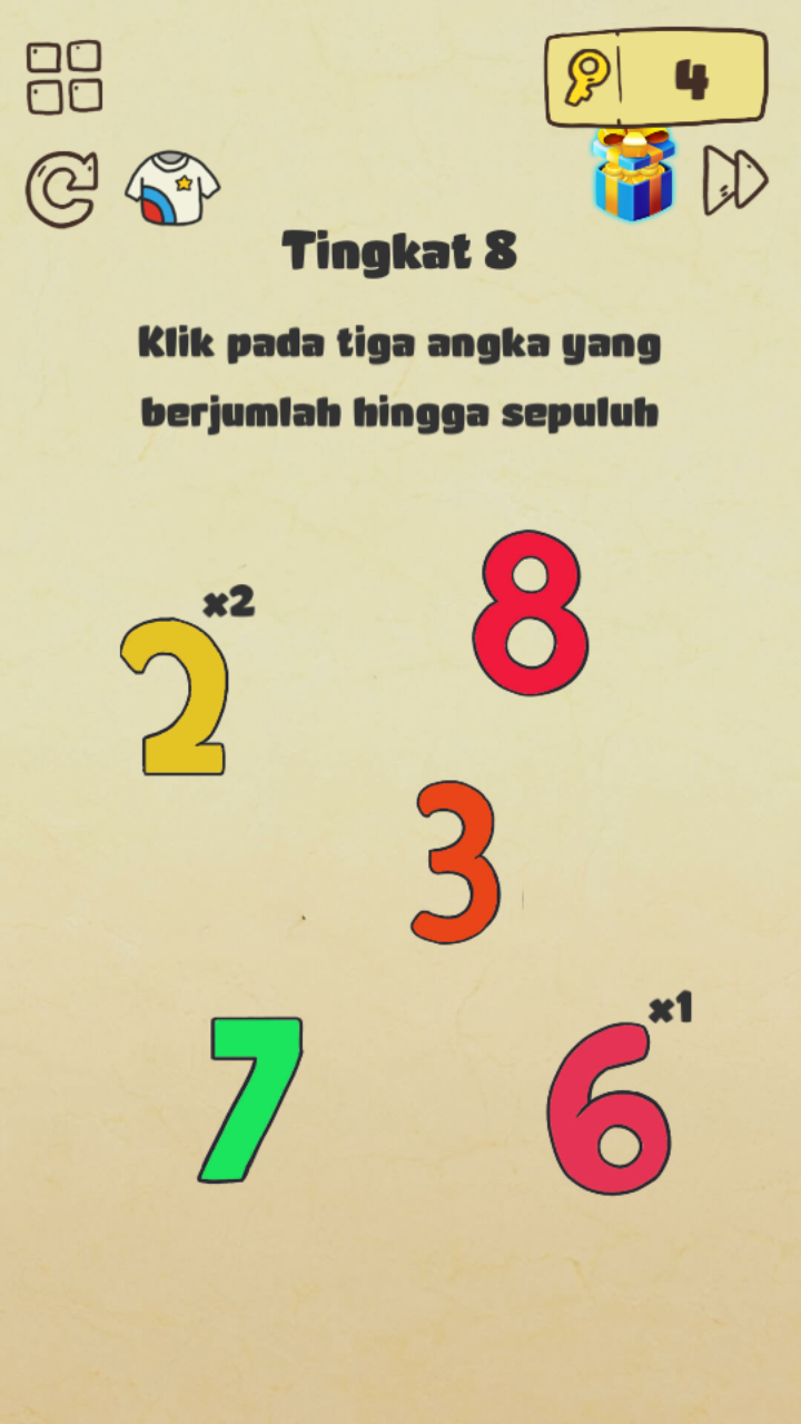 P: Klik pada tiga angka yang berjumlah hingga sepuluh