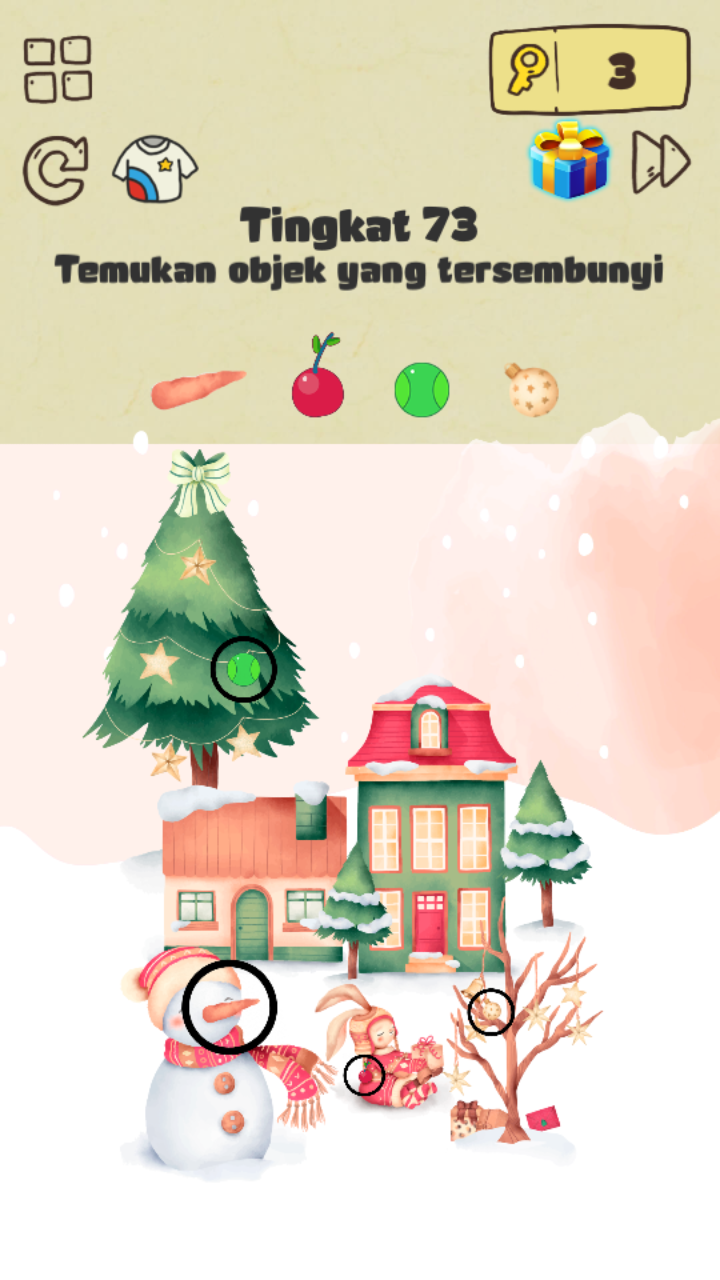 J: Geser layar ke kanan untuk menemukan pohon, lalu ketuk pohon itu untuk menjatuhkan kunci, dan kemudian geser kunci itu ke pintu rumah.