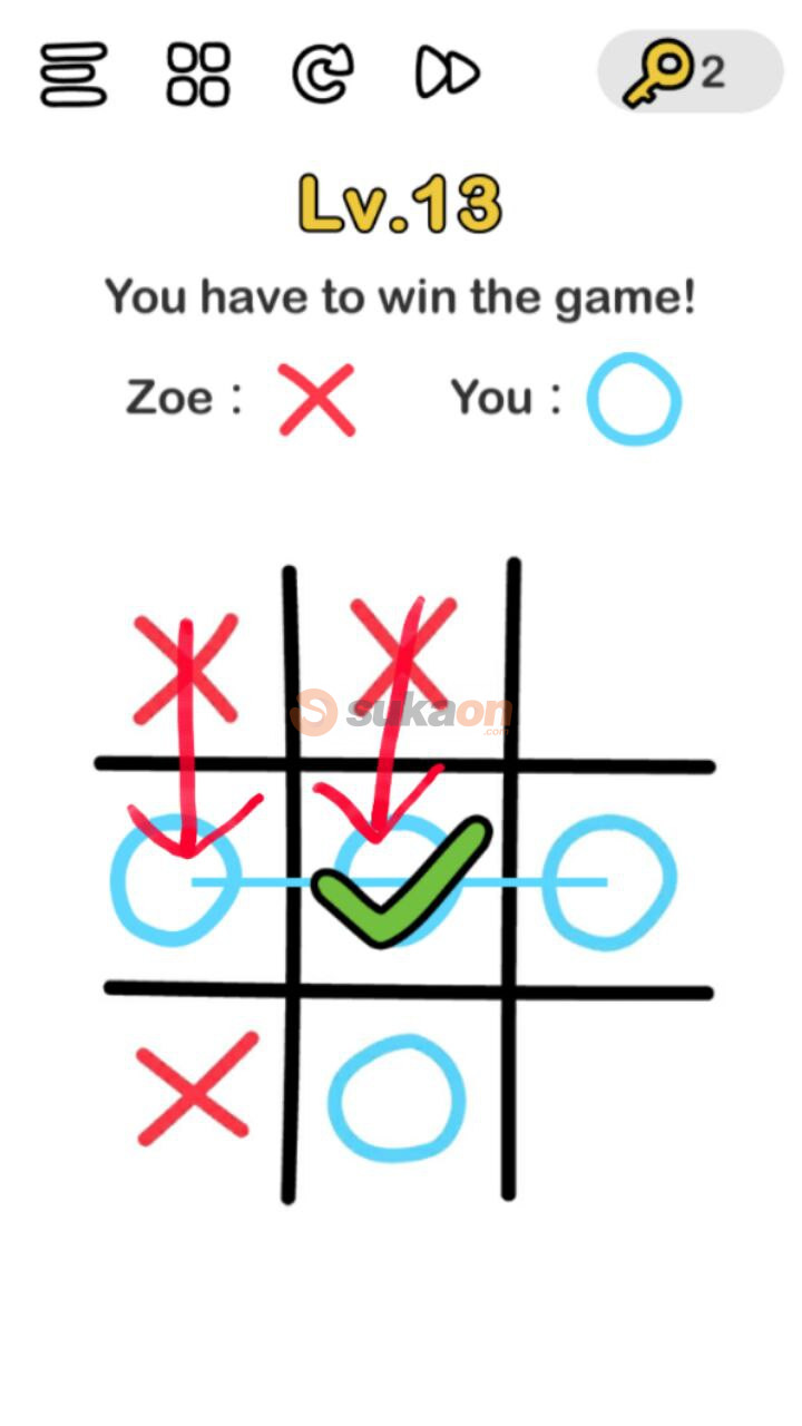 A: Geser lingkaran yang ada di sebelah teks “You” menuju ke baris pertama sebelah kanan (di sebelah x) dan kemudian ketuk baris yang kosong di pojok kanan bawah.