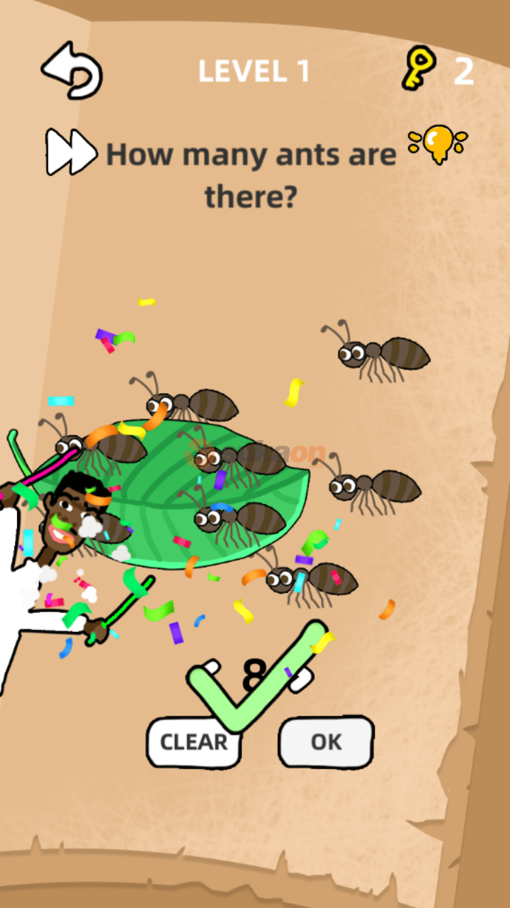 A: Geser semua semut untuk melihat semut lain yang tersembunyi, jumlahnya adalah 7 semut.