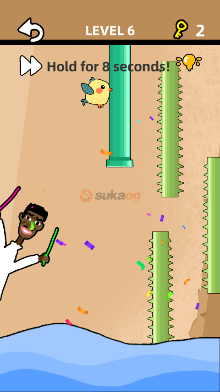 A: Kamu hanya perlu menerbangkan burung lalu pertahankan dia menabrak pipa hingga waktu selesai, namun jangan mengenai atasnya, pertahankan di tengah-tengah pipa.
