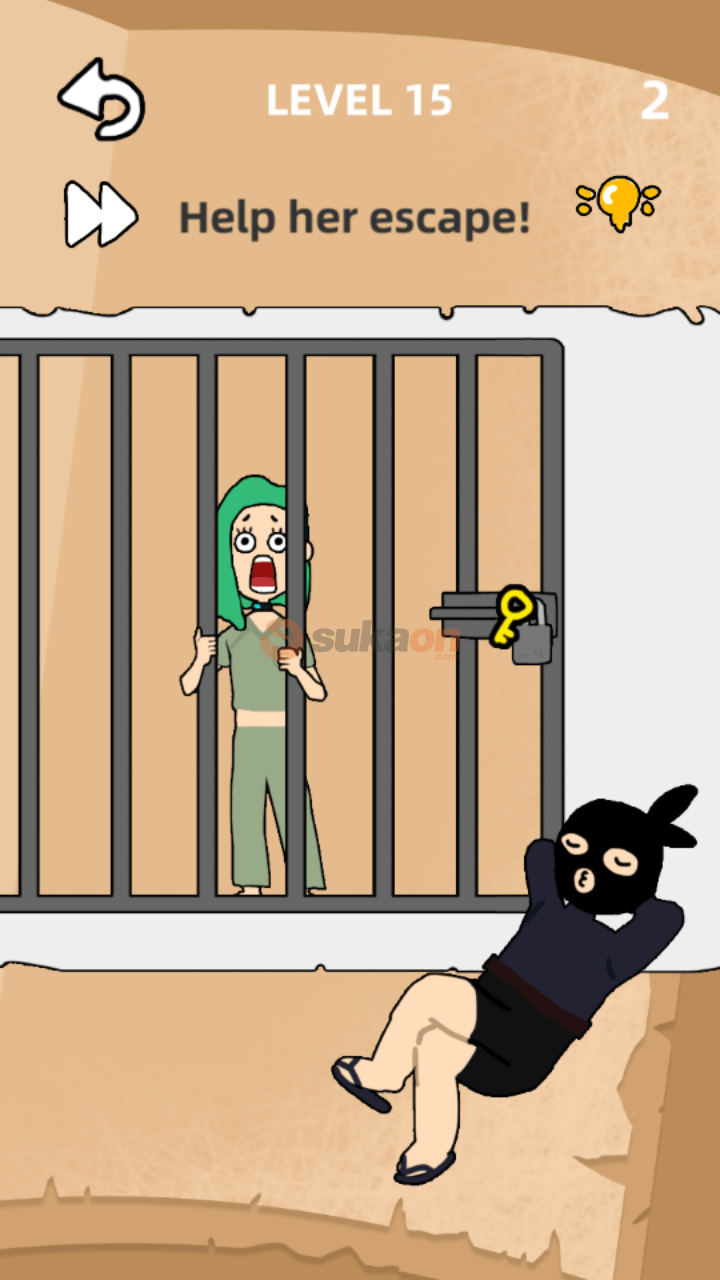 A: Geser kunci yang ada di pojok kanan atas layar menuju ke gembok sel penjara.