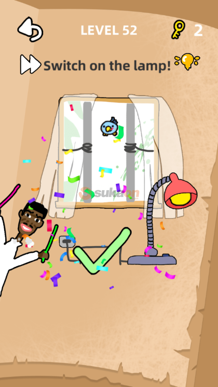 A: Geser lampu ke kanan untuk menemukan saklar lampu, dan kemudian ketuk saklar itu.