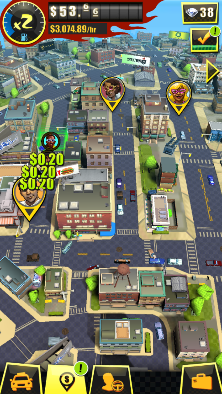 Kamu dapat mempekerjakan supir-supir berpengalaman untuk membantu kamu dalam menjalankan bisnis taxi. Di sini taxi dapat di-upgrade sehingga penghasilan yang kamu dapatkan bisa bertambah.