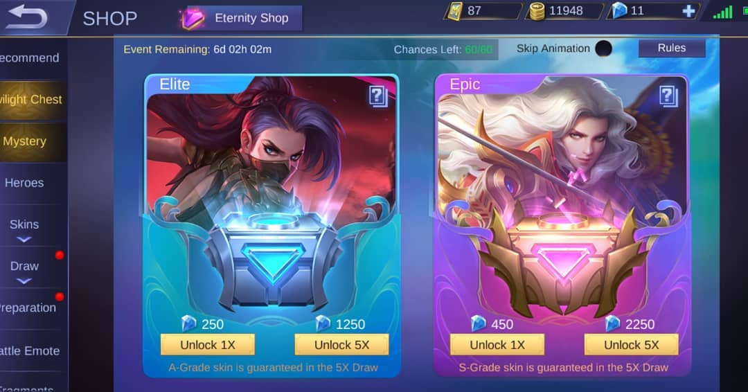 Event yang telah diadakan sejak 6 Juni 2019 kemarin ini membebaskan pemain untuk membuka 2 buah chess yang berisikan skin Elite, Epic, dan Special bergantung dari chess yang mereka pilih, baik itu Epic ataupun Elite chess.