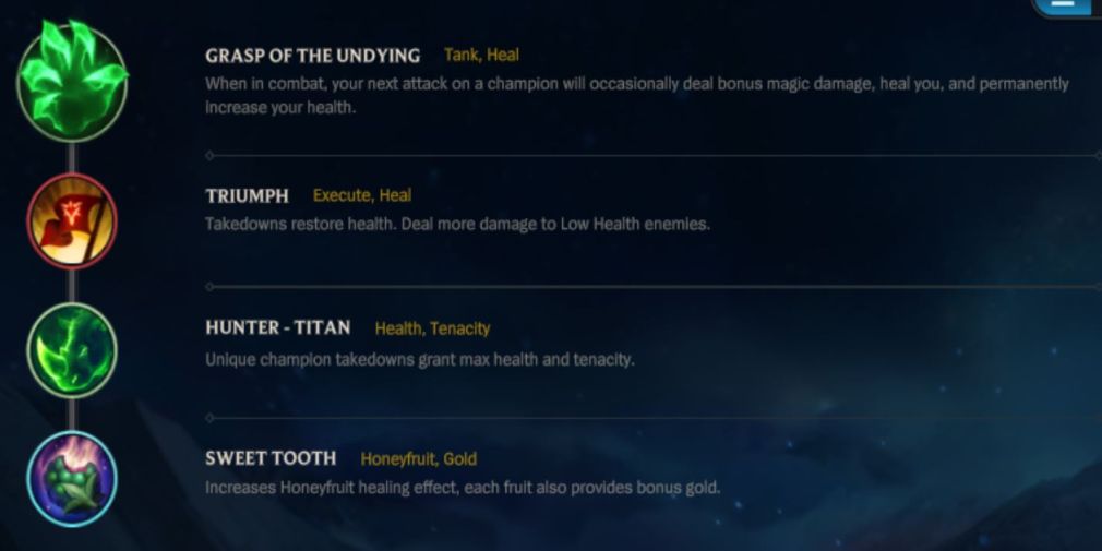 Keterampilan Mundo menggunakan HP-nya sendiri, tapi jangan khawatir – mereka tidak akan benar-benar membunuhmu . Namun, mereka akan mendapatkan HP kamu sangat rendah jika kamu terus menggunakan keterampilan, seperti Skill 2, non-stop tanpa alasan. Jadi, sebelum kamu mendapatkan Spirit Visage / Warmog’s Armor, jangan biarkan mereka terus aktif.