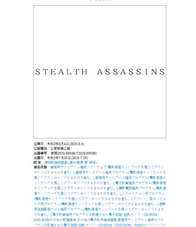 Pertama kali dilaporkan oleh Gematsu, mereka sendiri telah resmi mendaftarkan nama merk dagang “Stealth Assassin” sejak tanggal 20 Juli kemarin.
