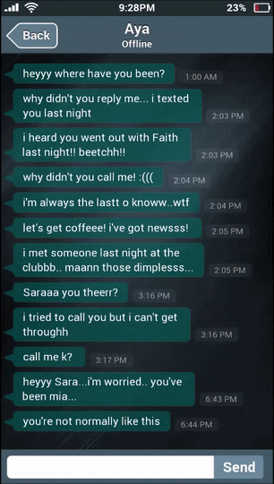 Sara is Missing merupakan game thriller interaktif, dimana pada game ini pemain harus mencari informasi tentang hilangnya seorang gadis yang bernama Sara. Pemain dapat mencari petunjuk melalui smartphone Sara dengan menyelidiki isi pesan, email dan galeri foto dengan bantuan AI bernama IRIS (layaknya seperti SIRI).