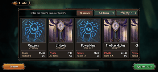 Team menyediakan keuntungan luar biasa, seperti pemain bisa meminta kartu dari anggota Team lain untuk mengisi slot dan Level Up kartu. Di Team Shop pemain bisa menggunakan Team Coin (mata uang reward) untuk membeli kartu.